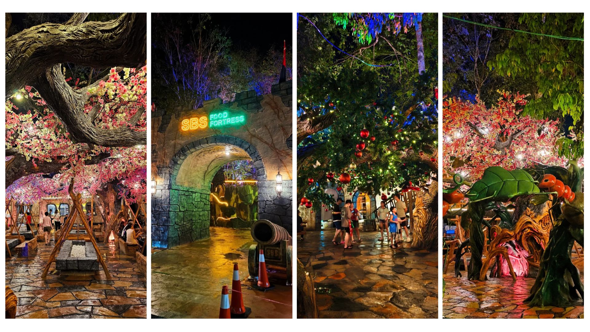 In addition to themed restaurants like The Forest Cafe, the resort also features a mix of coffee stalls, dessert vendors, grilled seafood, and night market-style food stalls. Visitors can either sit down for a proper meal or casually walk around, snack, and snap photos along the way — making it easy to explore at your own pace.